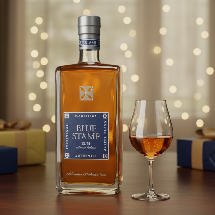 Blue Stamp pochádza z dielne Frederica Bestela, Master Blendera. Rum z Maurícia pripomína exotickú dovolenku. Zreje v dubových sudoch po fortifikovanom víne vďaka čomu má ovocný profil. Vo vôni i v chuti nájdete tóny hrozienok, mandlí a tropického ovocia. Je noblesný a elegantný.