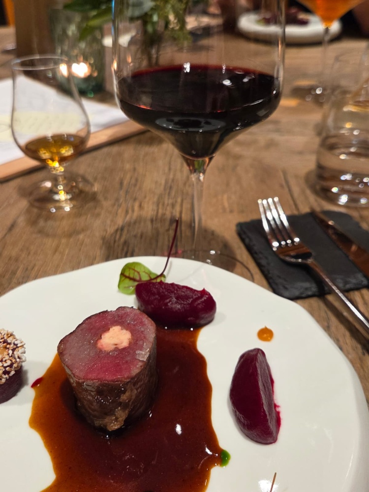 Najväčšou výzvou je aktuálne náš chod s vyprážaným brzlíkom na espume zo zemiakov na kyslo s čerstvým kôprom. V jednom jedle sa spája kyslosť, slanosť, aromatický kôpor aj jemný tukový nádych, takže bolo náročné nájsť ideálne víno. Nakoniec sme objavili dokonalú harmóniu s polosuchým Rieslingom zo Château Belá, ktorý sa pre väčšinu hostí stal highlightom menu. Naopak, najľahšie sa páruje náš hlavný chod – jeleň s repou, lieskovcami a rakytníkom. K nemu sa okamžite hodil Dunaj z vinárstva Ston S a táto kombinácia funguje úplne dokonale.